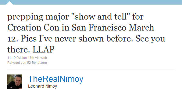 Mr. Nimoy has just one convention appearance left as he’ll be the featured guest at Creation Entertainments’s next Star Trek Convention in Chicago on October 2nd.