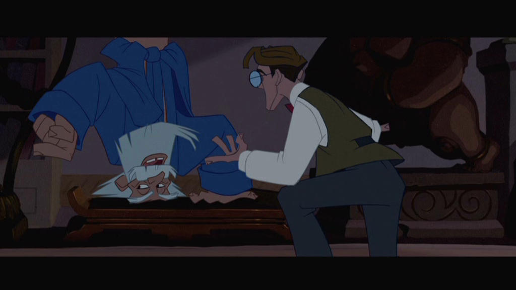 Meanwhile, Milo and the king's daughter, Kida, do some exploring. It turns out the Atlanteans can no longer read their own language and Kida wants to learn as much of her own culture from the linguist as she can before he has to go. When both return to the group an ugly surprise awaits them. Rourke and his team had never been in for the discovery but for the money expected to be gained from it. He takes Kida hostage to force the king to reveal the location of the crystal chamber where he expects to find a major treasure.